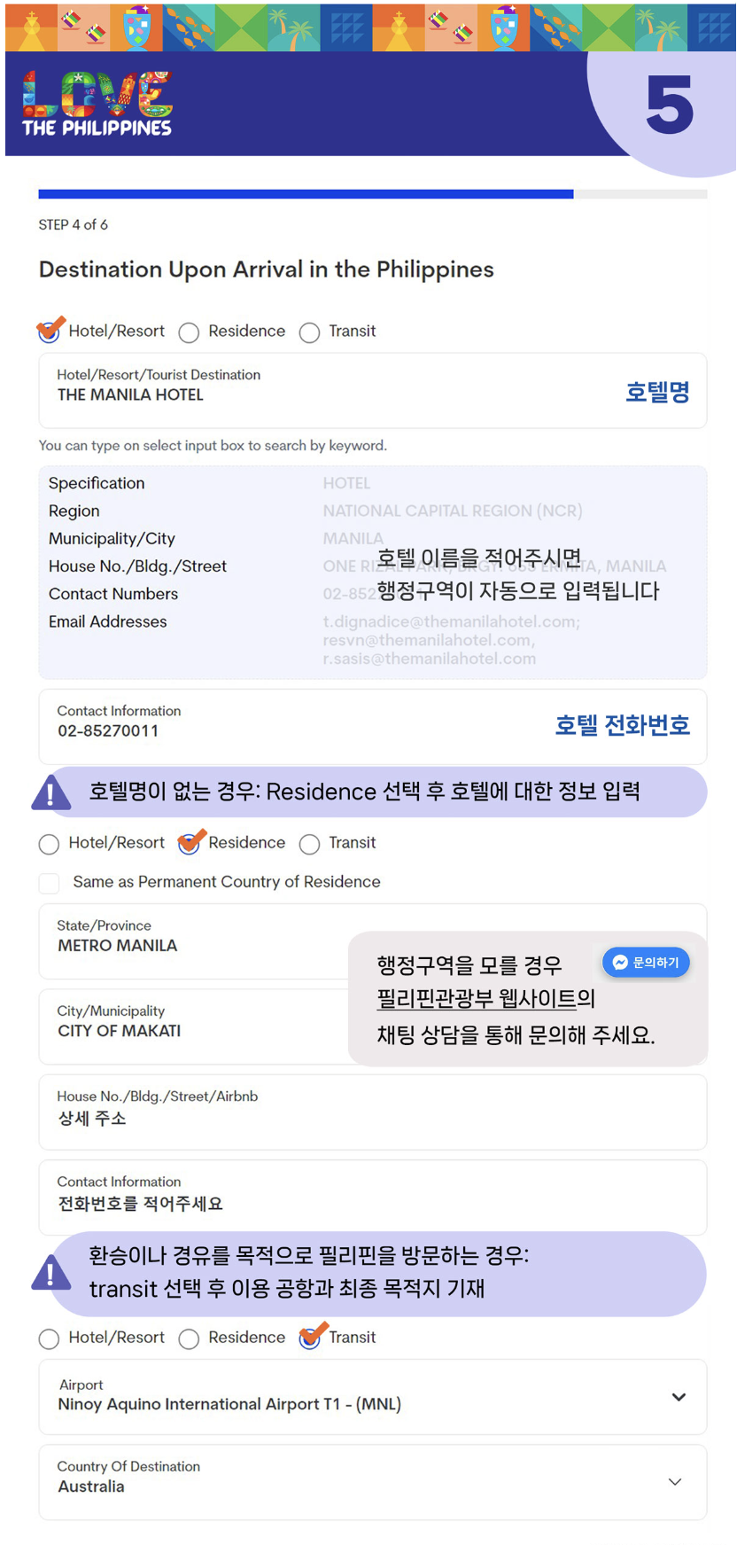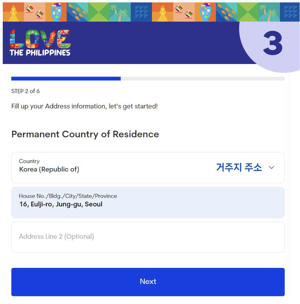 필리핀내 체류 주소 입력