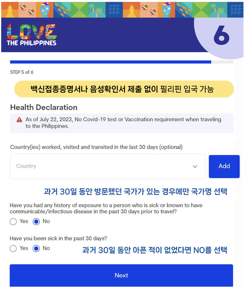 필리핀 입국 정보 입력