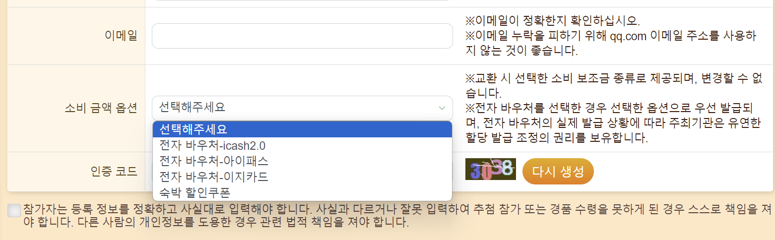 모든 사항을 입력하고 대만 여행지원금을 어떤 형태로받을지 소비 금액 옵션을 선택해 줍니다. 총 4가지의 옵션으로 선택을 할 수 있습니다.