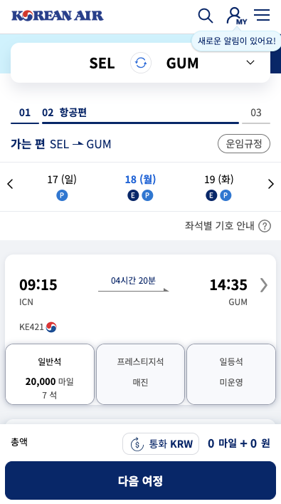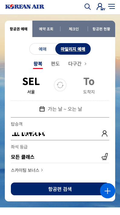 대한항공 마일리지 사용하기