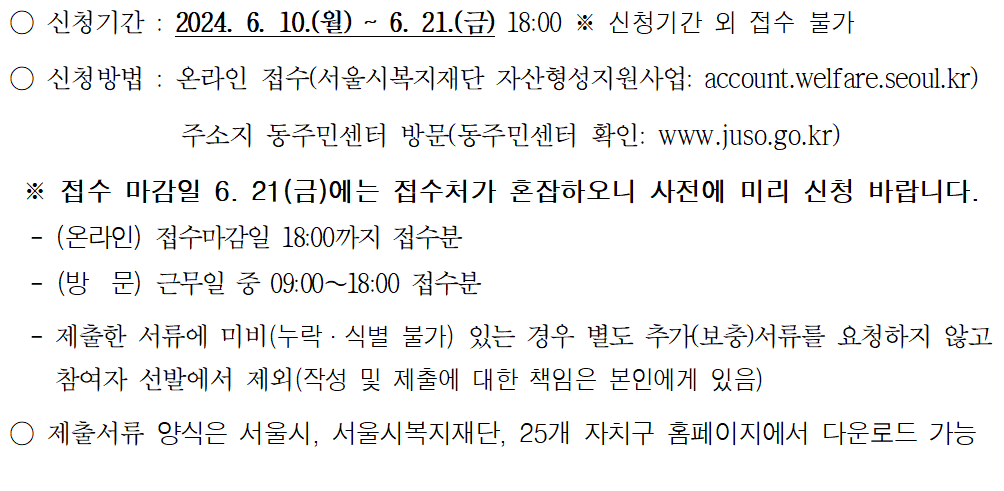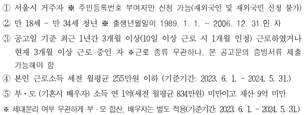 - 소득조건 : 세전 월 평균 255만원 (기준기간 : 23년 6월 1일 ~ 24년 5월 31일)